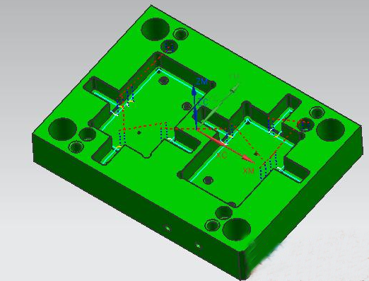 1,因模胚不是太大,大粗用D30R5,因為是封閉的區(qū)域,所以用跟隨部件開粗,拐角要設R角,一般是R3